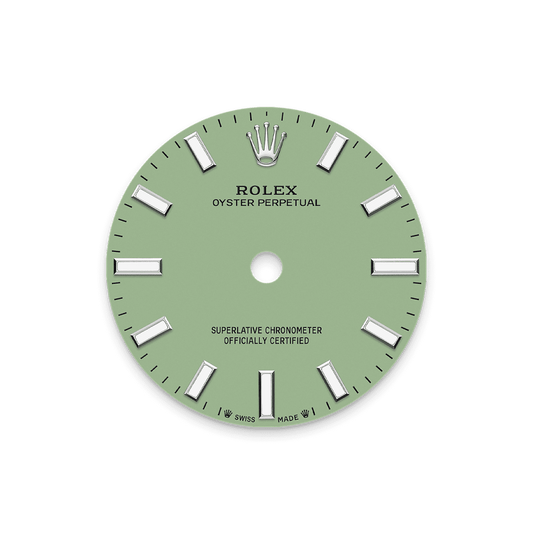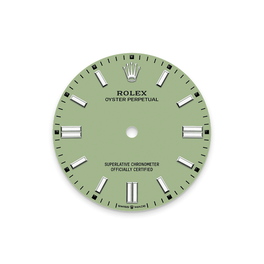 Unworn 2025, Rolex Oyster Perpetual, Oystersteel 41mm, Pistachio-green dial, Domed Oyster, Ref# 134300-0006, box and papers
