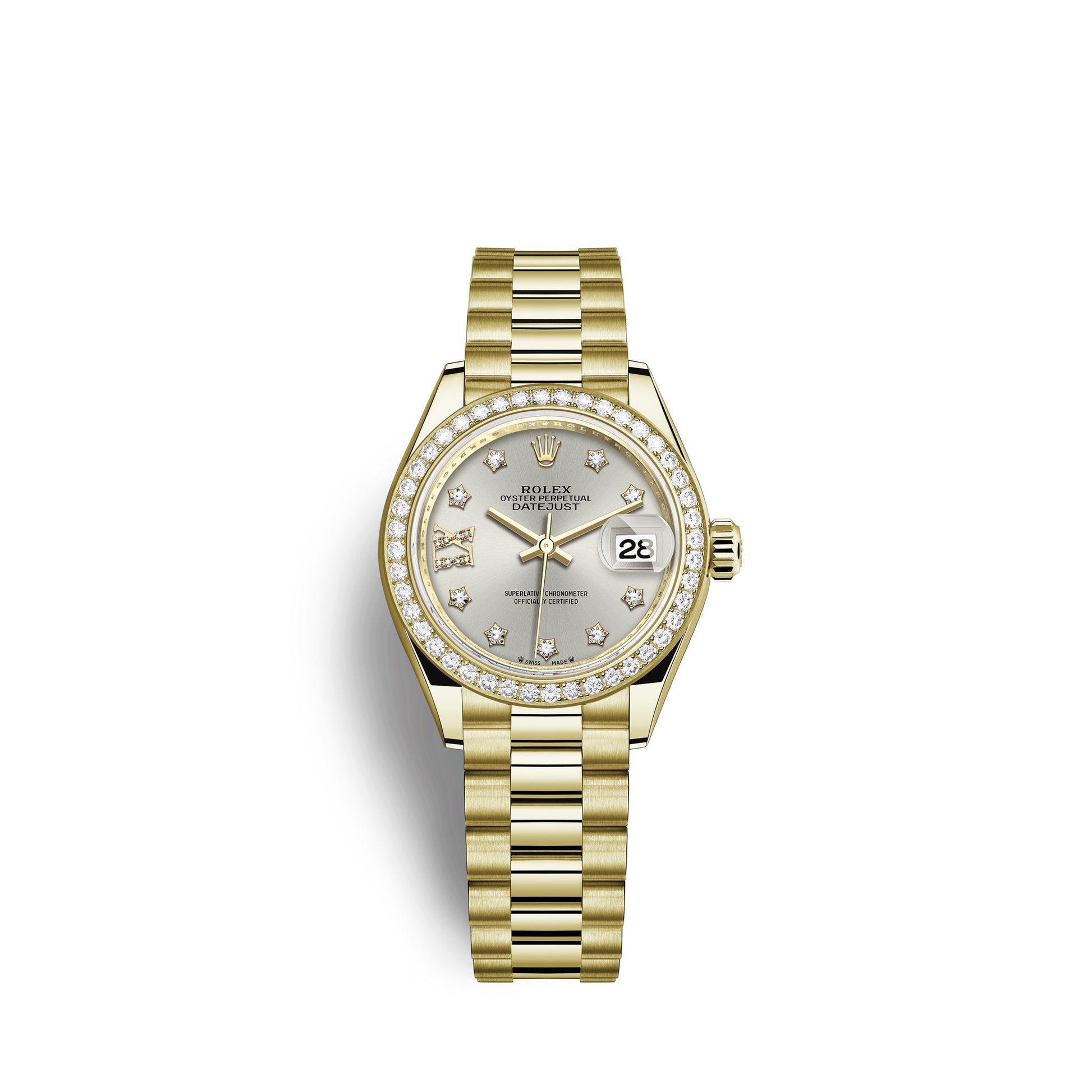 Unworn classic watch Rolex Lady-Datejust 28, 18kt Yellow Gold and diamonds, Ref# 279138RBR-0001 - luxury, elegance and practicality.