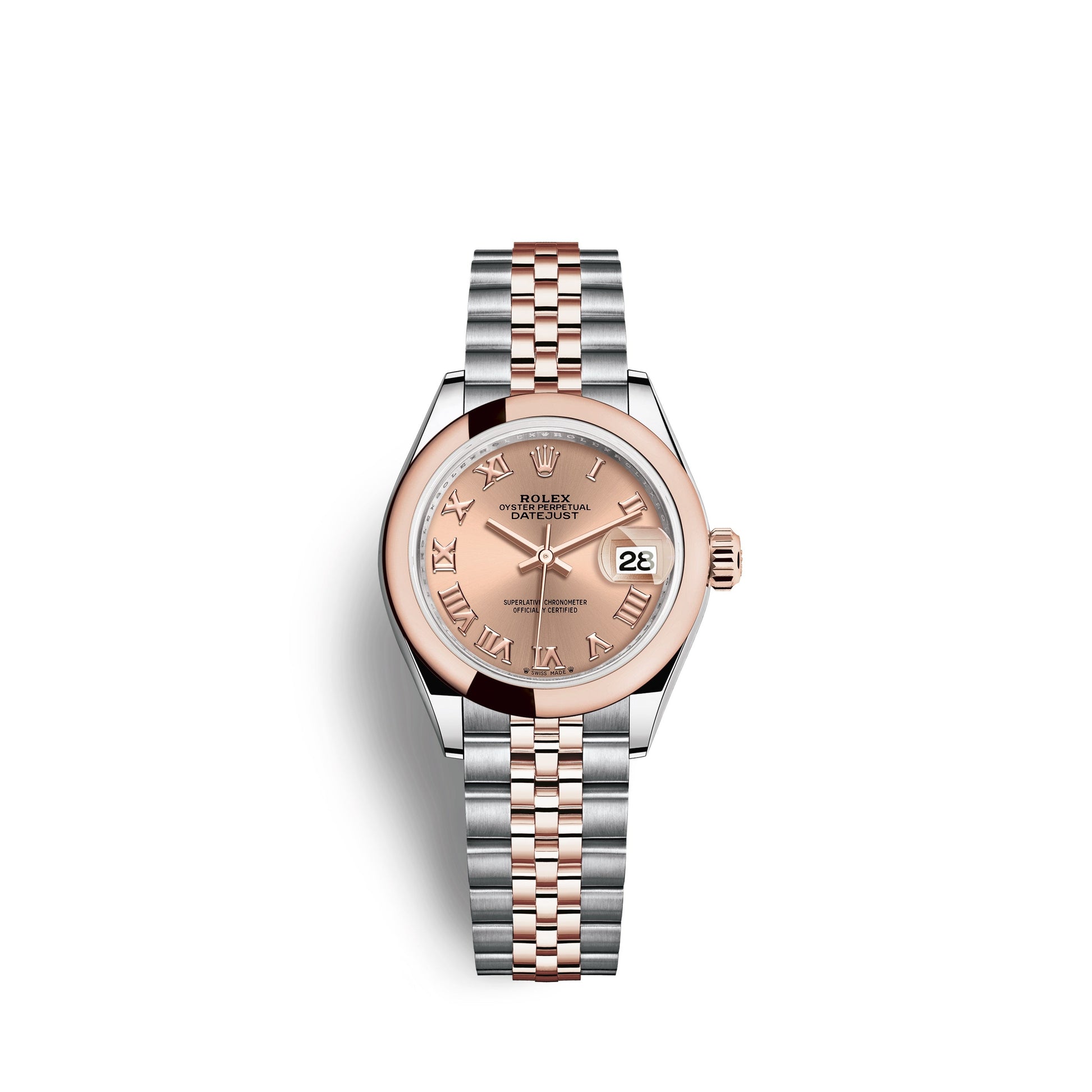 Unworn classic watch Rolex Lady-Datejust 28, Oystersteel and 18k Everose Gold, Ref# 279161-0025 - luxury, elegance and practicality.