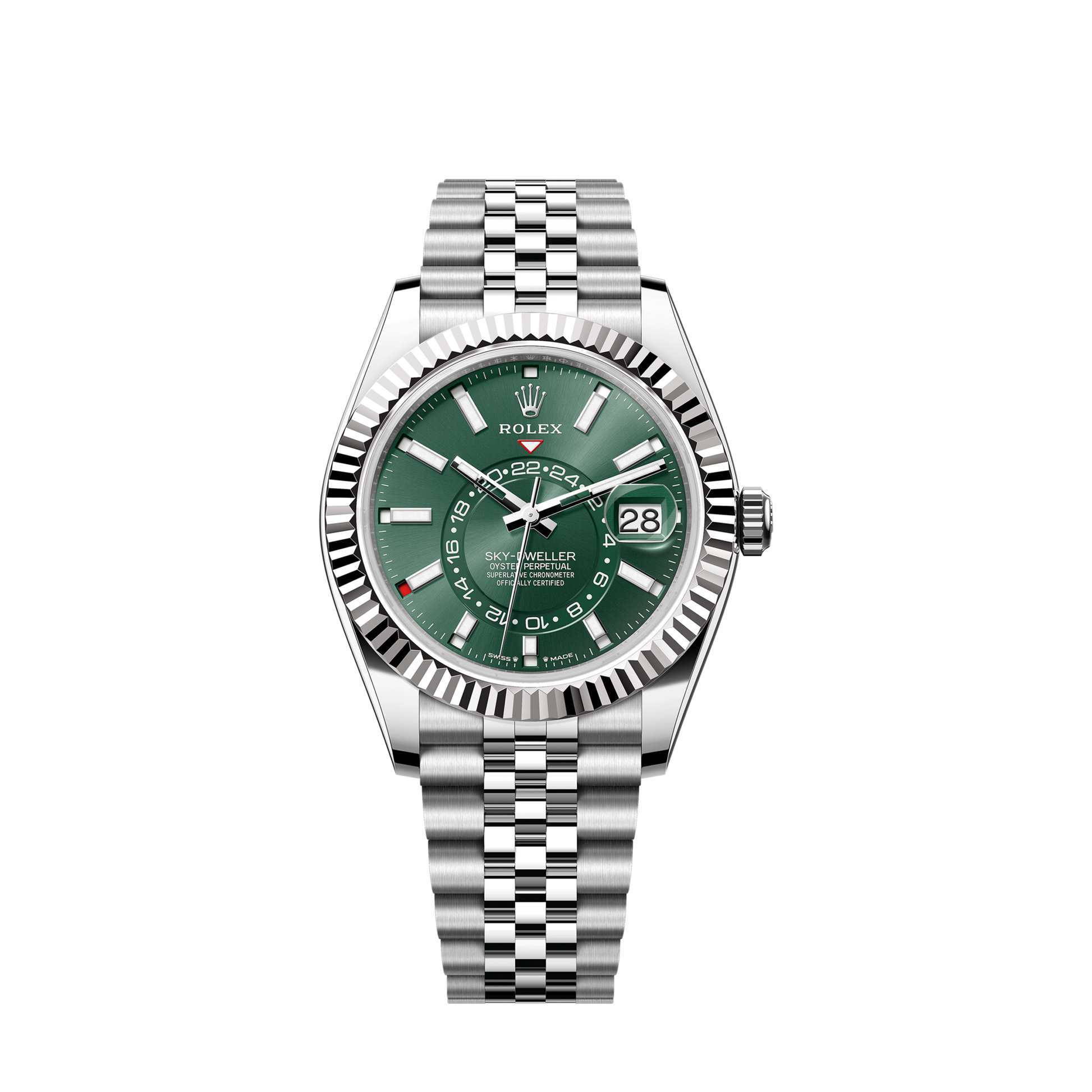Rolex Sky-Dweller, 42mm, Oystersteel and 18k White Gold, Green, Jubilee, Ref# 336934-0002