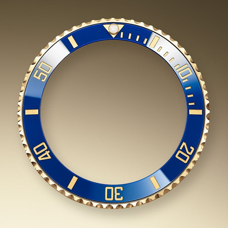 Rolex Submariner Date, 41mm watch of polished Stainless Steel and 18k Yellow Gold. This model has blue dial with a polished 18k Yellow Gold hour, minute and seconds hands in Mercedes-logo and Breguet-style sword shape with luminous fill. Applied polished 18kt Yellow Gold rimmed doty and index hour markers with luminous fill. Fine printed minute/seconds track on the dial rim. Highly legible Chromalight display with long-lasting blue luminescence. Polished 18kt Yellow Gold patented "Triplock" locking crown ensuring that the crown screws down onto the Oyster case as securely as a submarine hatch. The dial closed by a Scratch-resistant Sapphire Crystal and solid case back made. The Watch has Centre hour minute and seconds hands. Stop-seconds for precise time setting. Date window at 3 o'clock with a cyclops magnifier. The watch is equipped unidirectional rotatable polished 18k Yellow Gold bezel with knurled corners for enhanced grip. Blue "Cerachrom" bezel insert, made of ceramic which is extremely hard, durable and highly scratch-resistant. Ceramic has excellent corrosion resistant properties and is unaffected by ultraviolet rays so the color will not fade. It features a 60-minute immersion scale engraved in yellow gold with a luminous point at the origin. The movement is mechanical self-winding 3235, containing 31 Jewels and 70 hours of power reserve. The Rolex Oyster bracelet of brushed outer links Stainless Steel and polished center links 18k Yellow Gold with folding Oysterlock safety clasp with Rolex Glidelock extension system. The water resistance is up to 300 meters/1000 feet.