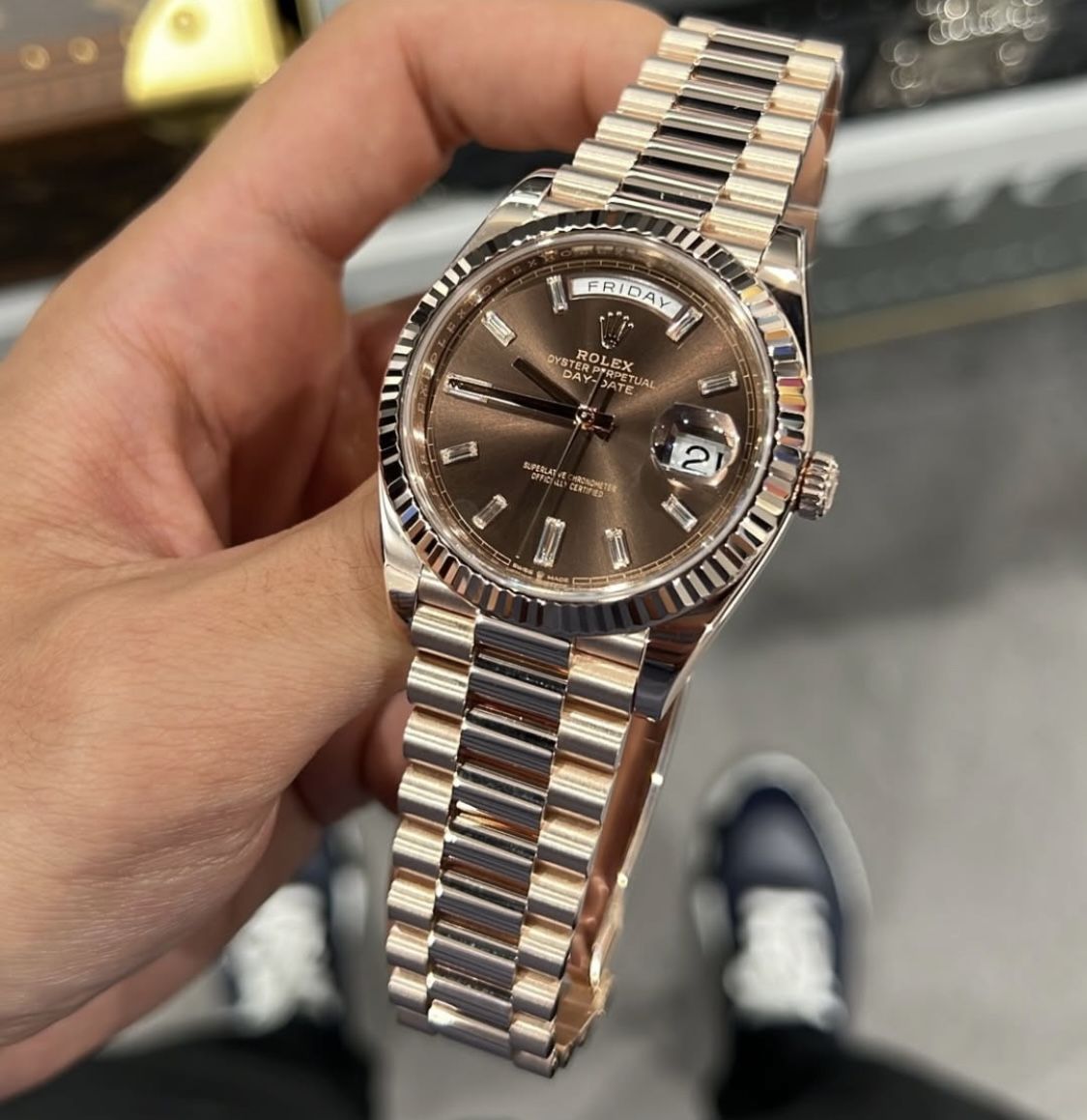 "Honestly, I was a bit nervous about buying an 18k Day-Date online, but PrimesStore handled everything perfectly. The weight of this thing is incredible—you can really feel the quality of the gold on your wrist. The champagne dial catches the light in a way photos just can't capture. It’s a total power move for the office. Definitely my new daily driver.