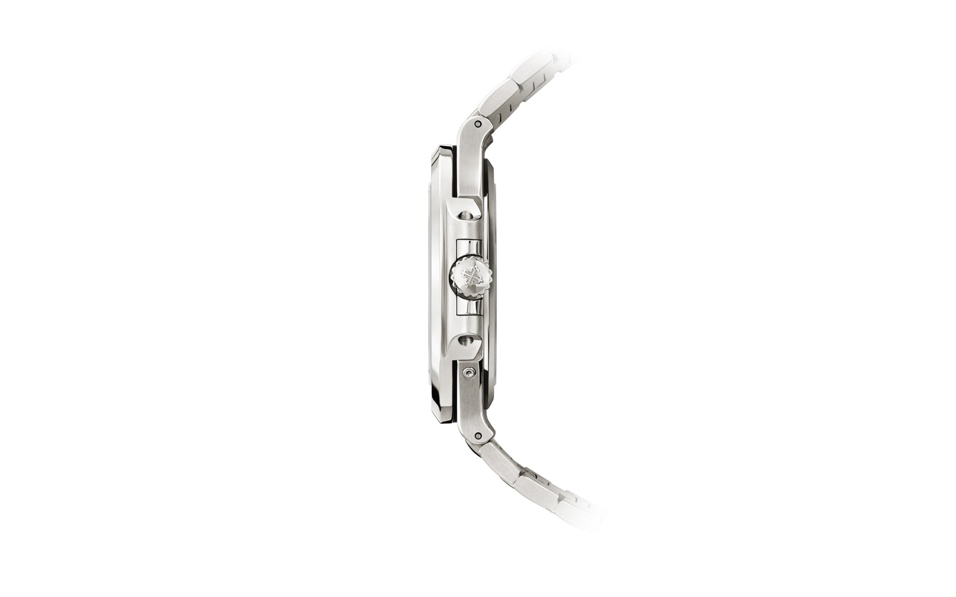The new luxury watch Patek Philippe Nautilus Date, Moon Phases, Stainless Steel, 40 mm, reference 5712/1A-001, is the perfect combination of traditional elegance and sporty style with a timeless design. The black-blue dial with a horizontal relief, which is one of the hallmarks of this model, looks organic. To achieve perfect readability (Patek Philippe requirement for all their watches), the dial features large silver-tone hour and minute hands with luminescent coating, as well as applied luminous indexes. On the outer edge of the dial, a dotted minute scale is applied, which helps to determine the time more accurately. Between 10 and 11 o'clock, the power reserve indicator is quite appropriately placed. At the 7 o'clock position there is an indicator showing the date and phases of the moon. Moreover, at the 5 o'clock position there is a small second subdial. A polished Stainless Steel Screw-down crown with a ribbed edge for easy grip and the Patek Philippe logo is completes the watch's harmony. The dial closed by a Scratch-resistant Sapphire Crystal. Sapphire-crystal too case back, which allows of the case, allows you to see the magical work of the movement. The wide, rounded octagonal stainless steel bezel, brushed on the front and polished on the sides, provides a wide view of the dial as the horizon is visible through the porthole. What's more, the side protrusions, also called "lugs", are inspired by the hinges on these windows. The Model has Patek Philippe Caliber 240 PS IRM C LU, with a self-winding mechanical movement containing 29 Jewels, with a power reserve of min. 38 hours - max. 48 hours. This beautiful sport-chic watch presented on a Stainless Steel Bracelet, combines elegance with a truly comfortable fit. It features a Patek Philippe patented Stainless Steel Nautilus fold-over clasp. The water resistance is up to 60m/200ft (6 ATM).