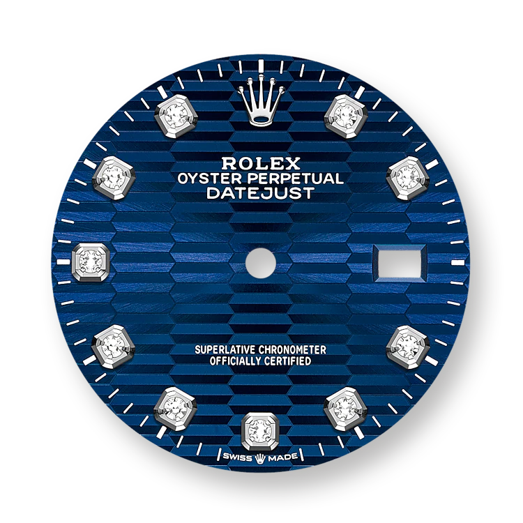 - Dial color: Bright blue dial fluted motif and 10 Diamonds as hour markers framed in 18k White Gold