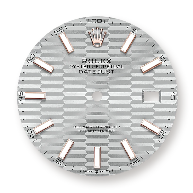 - Dial color: Silver dial fluted motif and Indexes of 18k Everose Gold with luminous fill as hour markers